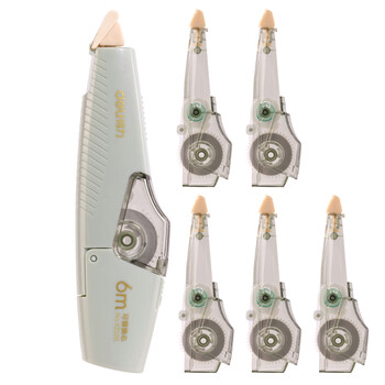 得力(deli)绿色36m笔型修正带套装1个修正带本体+5个修正带替芯 顺滑不断带强遮盖力复印无痕大容量(绿)