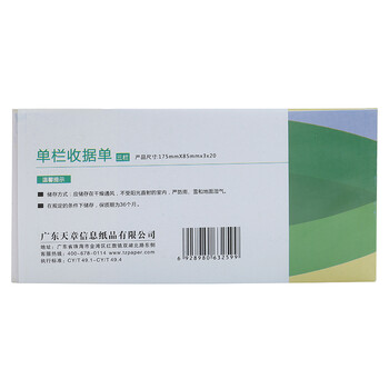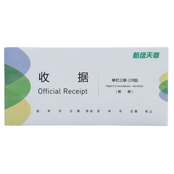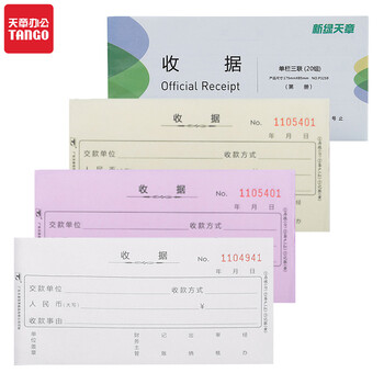 天章(TANGO)54K三联单栏收据C版175*85mm/无碳复写单据/销售购物付款收据/带撕裂线/20组/本 十本装 财会用品