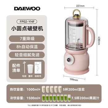 大宇(DAEWOO)破壁机低音豆浆机迷你全自动免手洗搅拌机营养调理机家用可榨小米糊FP02樱花粉