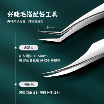 优家(UPLUS)精密单簇假睫毛镊子2件(金羽夹+海豚夹)种植嫁接睫毛工具