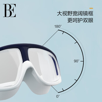 范德安(BALNEAIRE)高端大框近视泳镜高清防雾防水游泳装备防晒度假 藏蓝白镀膜平光