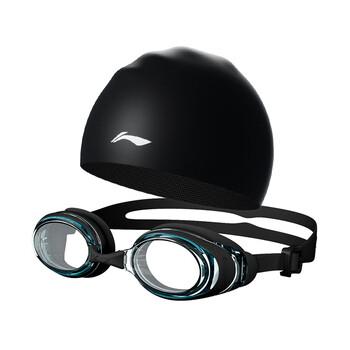 李宁(LI-NING)泳镜女士高清防雾游泳镜男士成人近视泳镜泳帽套装55-808黑400度