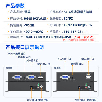慧谷 VGA光端机 高清视频 VGA光纤延长器 1路VGA+1路音频+本地环出+USB SC接口 1对价 HG-811VGA+USB