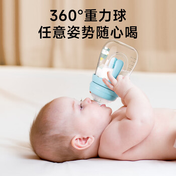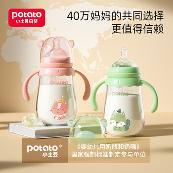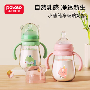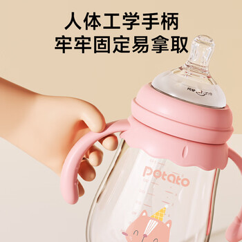 小土豆(potato)吸管奶瓶婴儿玻璃宽口径带手柄重力球配L号4个月以上 240ml艾草绿
