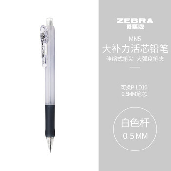 斑马牌 (ZEBRA)活动铅笔 0.5mm彩色杆活芯铅笔 学生用自动铅笔 MN5 白色杆