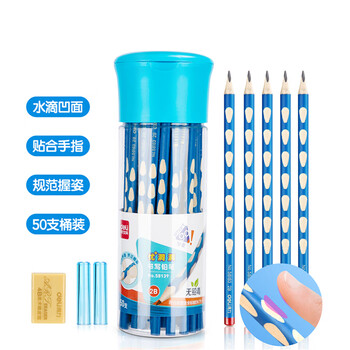 得力(deli)洞洞笔铅笔50支2B三角杆易抓握书写矫姿铅笔学生练字笔带橡皮58139学生开学文具