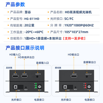慧谷 HDMI光端机 高清视频光端机 HDMI光纤延长器 1路HDMI+音频+本地环出 FC接口 HG-811HD