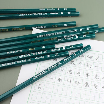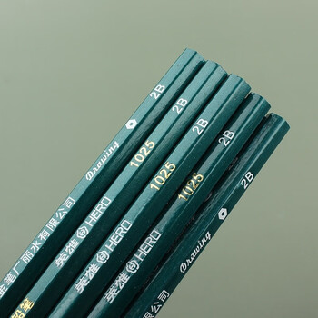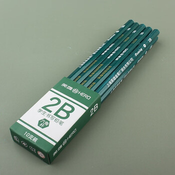 英雄(HERO)铅笔 红木六角杆闪光绿两头切光学生考试素描绘图铅笔 10支装 1025-2B