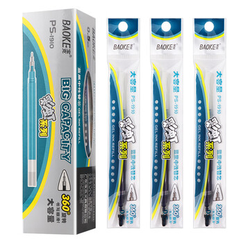 宝克(BAOKE)PS1910 0.5mm半针管蓝黑色大容量中性笔笔芯 水笔签字笔替芯 12支/盒