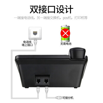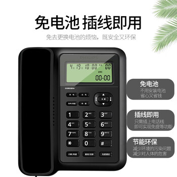 飞利浦(PHILIPS)有绳电话机座机 固定电话 办公家用 双接口 免电池 免提通话 CORD281A黑色
