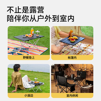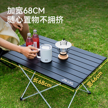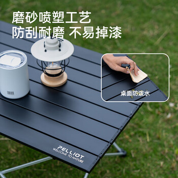 伯希和户外折叠桌露营蛋卷桌铝合金超轻便携野餐桌子16106109曜石黑L
