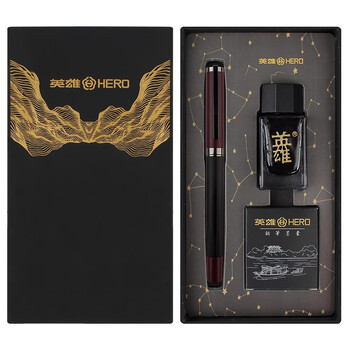 英雄(HERO)钢笔 6192 陈酒红 男女商务个性办公签字笔钢笔礼盒墨水套装