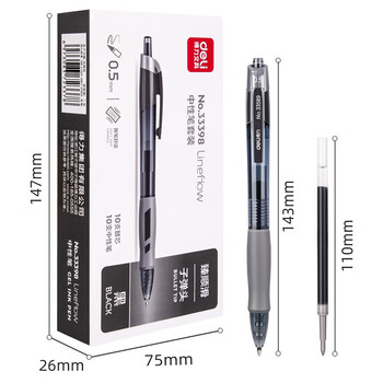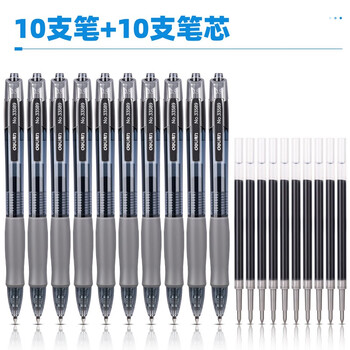 得力(deli)臻顺滑中性笔签字笔芯套装 0.5mm子弹头按动笔水笔芯 黑色 10支笔+10支替芯 33398