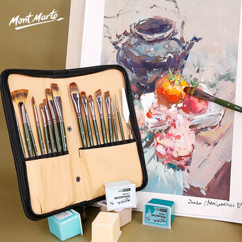 蒙玛特(Mont Marte)油画笔15支装 油画颜料画笔美术画画笔勾线笔丙烯水粉水彩绘画笔 带刮刀笔袋套装BMHS0044 速写 马克笔绘画