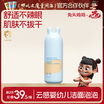 兔头妈妈儿童洗面奶 宝宝洁面乳洁面泡 护肤清洁洗脸舒缓卸防晒0-3岁90ml