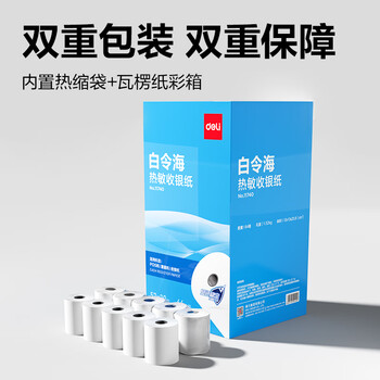 得力(deli)57*30型4.5米*64卷 白令海热敏收银纸 京东美团外卖超市小票纸 11740【适配58mm机器 5801P等】