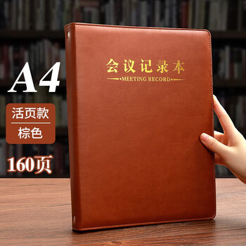 嘉然恒A4大号会议记录本加厚笔记本子可拆卸活页本记事本办公文具16K工作笔记本商务皮面本子定制-A4棕色