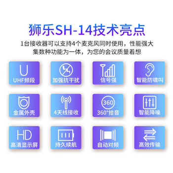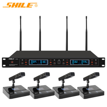 狮乐(SHILE)SH-14无线会议室话筒短杆一拖四U段方杆麦克风专业会议主持桌面鹅颈
