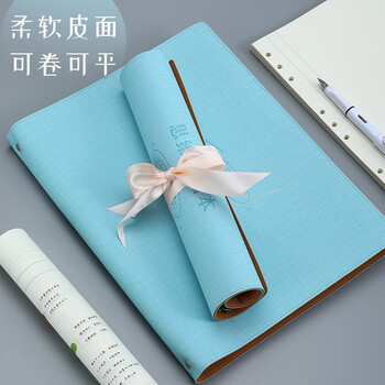 嘉然恒A4大号思维导图5r记忆活页康奈尔笔记本本子软皮面大学生考公考研网格本方格复习记事本可拆卸蓝色