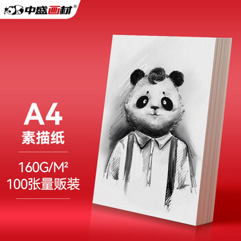 中盛画材100张160g/A4素描纸加厚彩铅画纸素描速写专用纸练习用绘画大白纸美术写生