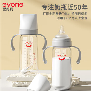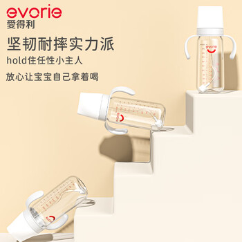 爱得利(evorie)奶瓶 带手柄带重力球宽口径宝宝Tritan奶瓶300ml灰(6个月+)