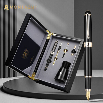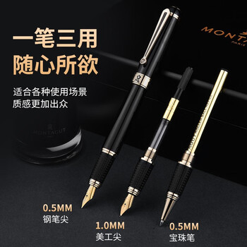 梦特娇(MONTAGUT)【马年礼物】钢笔宝珠笔笔美工笔弯头弯尖书法练字商务办公三件套套装精英系列黑色