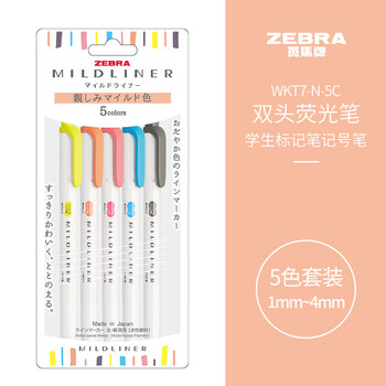 斑马牌 (ZEBRA)荧光笔 WKT7 5色套装 亲和系列 双头荧光笔 学生标记笔记号笔 WKT7-N-5C