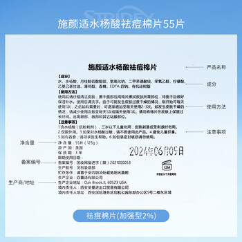 施颜适STRIDEX水杨酸祛痘棉片55片(加强型2%水杨酸棉片)*1