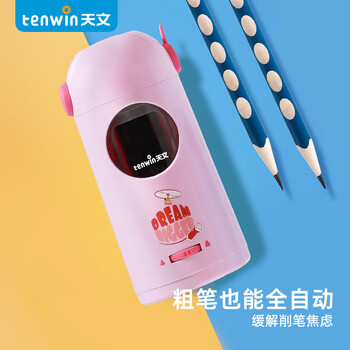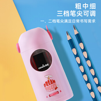 天文全自动削笔机器小学生文具大口径卷笔刀可削11.5mm粗杆大三角铅笔转笔刀儿童电动削笔器 哆啦A梦粉