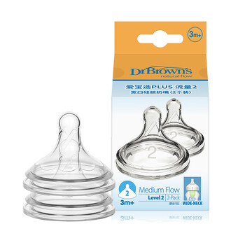 布朗博士婴儿奶嘴 宽口径硅胶圆孔中流速 3-6月 (2个装) 爱宝选PLUS