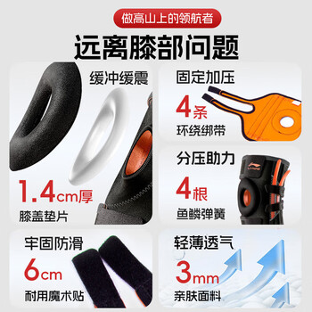 李宁(LI-NING)护膝运动半月板羽毛球跑步篮球髌骨男女登山健身足球深蹲膝盖护具