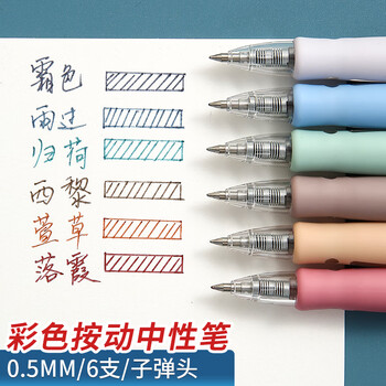 晨光(M&G)文具六色彩色中性笔0.5mm子弹头签字笔水笔 学生办公刷题办公用 6支/盒AGP02315