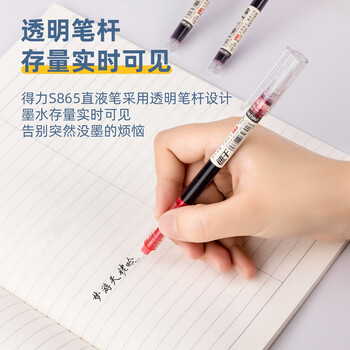 得力(deli)速干直液笔签字笔 0.38mm全针管无印风中性笔水笔走珠笔会议笔 ins简约风12支/盒S865红