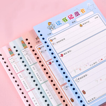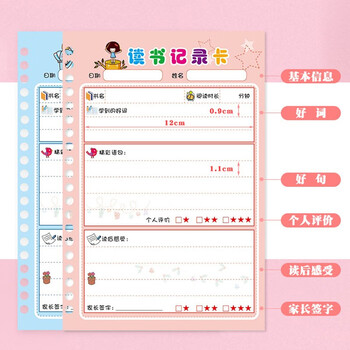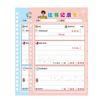 誉禾A5读书记录卡活页登记卡学生课外阅读摘记本笔记本读后感好词好句摘抄记录卡50张 5131-A5粉色