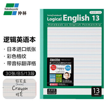 Nakabayashi仲林英语本B5/30张 学生作业本外语单词练习笔记本 13段