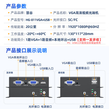 慧谷 VGA光端机 高清视频VGA光纤延长器 1路VGA+1路音频+本地环出+USB FC接口 1对价 HG-811VGA+USB