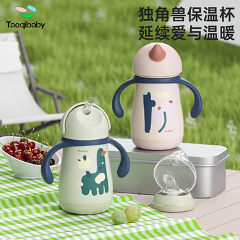 taoqibaby婴儿保温杯吸管奶瓶宝宝喝水杯学饮杯316不锈钢小学生上学保温杯