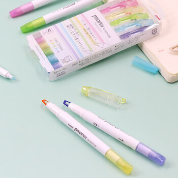 uni三菱 双头荧光记号笔 学生作业手账绘画标记笔彩色笔 PUS-103T 5色淡色系套装