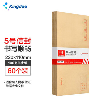 金蝶(kingdee)60张5号100g牛皮纸信封 邮局标准信封220*110mm