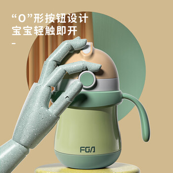 FGA富光儿童保温杯幼儿园宝宝吸管鸭嘴学饮杯316L不锈钢喝水壶杯子蓝