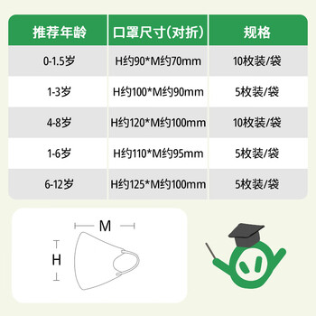 绿鼻子(green nose)儿童口罩 婴儿宝宝流感防护用品 萌萌兔 小童5片【1-3岁适用】