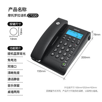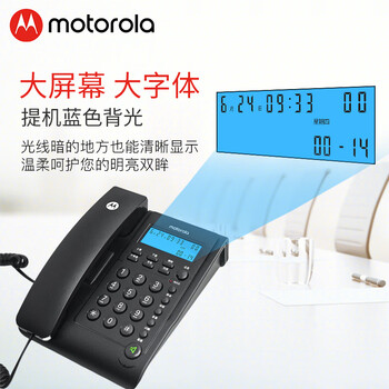 摩托罗拉(Motorola)电话机座机 蓝色背光 显示清晰 免提免打扰 桌墙两用 家用办公 有绳固定电话机 CT220黑色