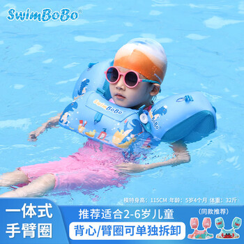 swimbobo儿童游泳臂圈 游泳装备2-6岁充气式浮力浮袖漂手臂圈浮圈1600蓝色
