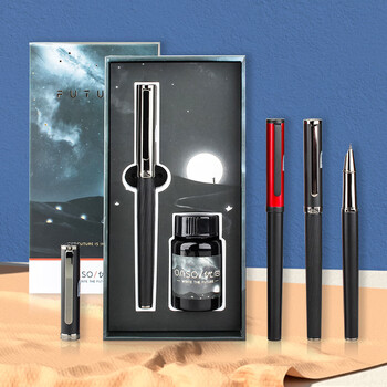【开学必备】优尚(OASO)钢笔学生墨水笔礼盒中性签字笔商务礼品永夜黑 铱金美工笔
