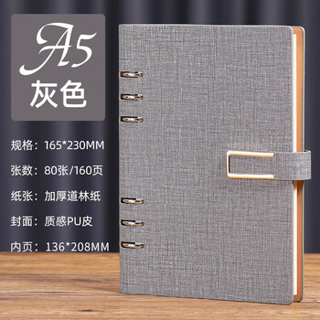 嘉然恒 活页本a5加厚搭扣笔记本子文具简约记事本商务办公会议记录本可拆卸环扣活页学生日记本定制-灰色