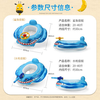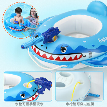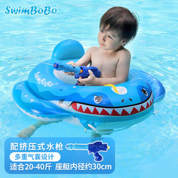 swimbobo婴儿游泳圈卡通戏水儿童 带水枪宝宝坐艇游泳坐圈K2006S鲨鱼款式