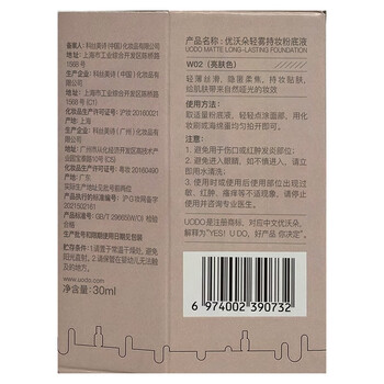 优沃朵轻雾持妆粉底液W02(亮肤色)