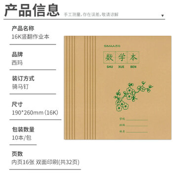 西玛(SIMAA)小学生3-6年级统一标准16K大号作业本 数学作业本10本装 8820