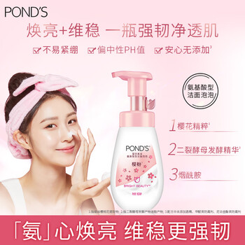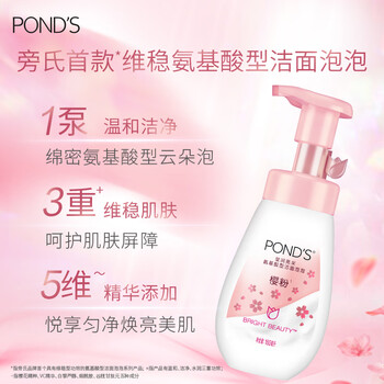 旁氏(POND'S)樱粹粉润焕亮洁面泡泡160ml 烟酰胺氨基酸洗面奶