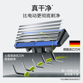 焕醒 剃须刀刀头男士六层刀片刮胡刀手动德国进口4只装刀头6层